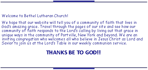 Welcome to Bethel Lutheran Church in Portville, NY. Please come join us!!